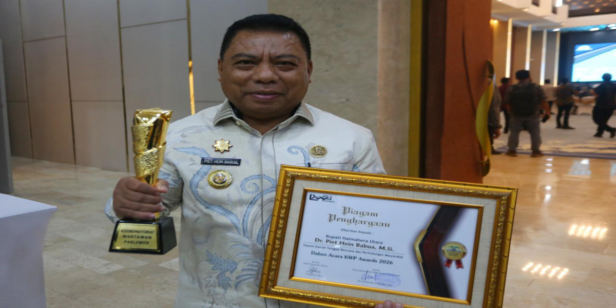 Megapolitan.co – Bupati Halmahera Utara, Piet Hein Babua, meraih penghargaan dalam ajang KWP Award 2026 pada kategori Kepala Daerah Tanggap Bencana dan Perlindungan Masyarakat, di Gedung Nusantara IV, Kompleks Parlemen, Senayan, Jakarta, Kamis, 16 April 2026